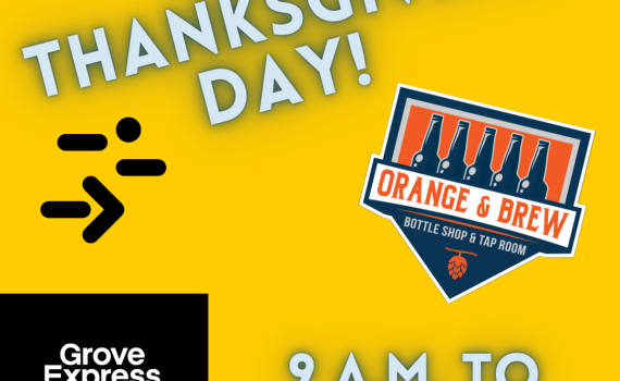 If you’re gonna run out on Thanksgiving, might as well run out to Orange & Brew! Whether you’re in the Grove Express 5K that morning, watching friends or family run, or just need to grab something cold for wherever you’re gathering, we’ll be open from 9 a.m. to 1 p.m. […]